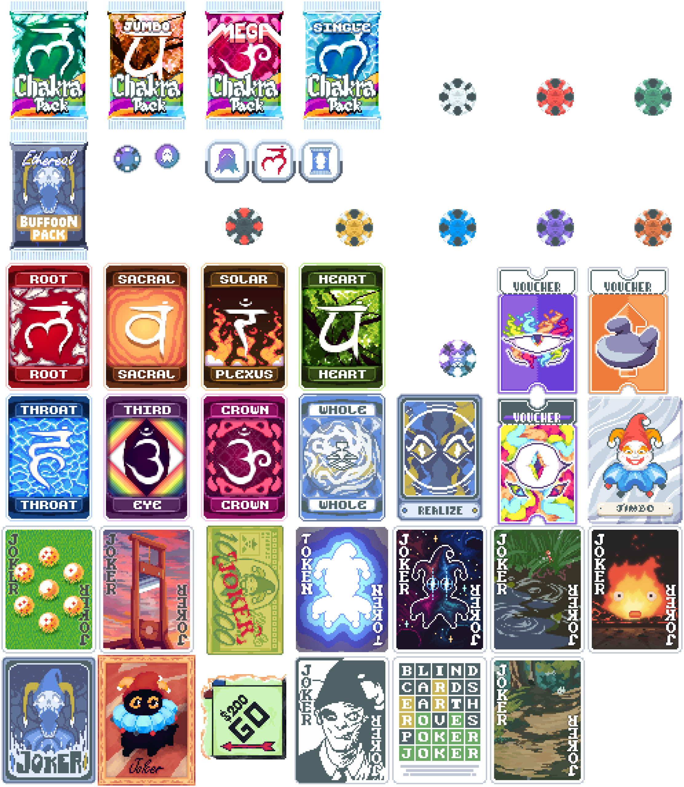 Chakra Collection: A Balatro mod of my own creation themed around a new consumable type. Written in Lua using Lovely and Steamodded.